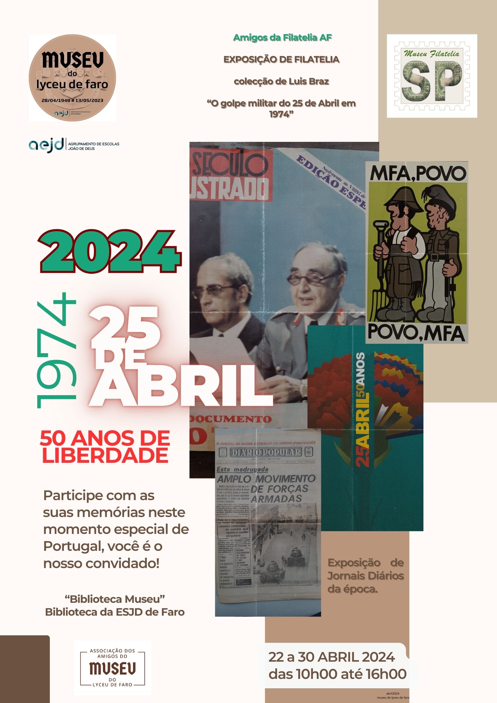 Uma exposição com, jornais diários da época e uma colecção de filatelia também sobre a revolução de Abril.